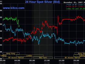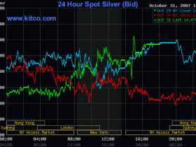 nö, den offiziellen New Yorker Schlusskurs gibt`s noch nicht. Die schlichte optische Ablesung aus dem Chart der Kitco deutet allerdings auf 14,37. ![]()