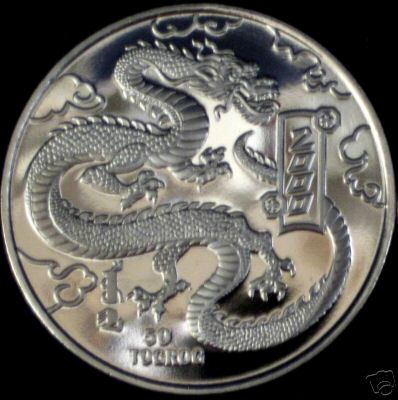 Allerdings gabs von der 1999 Jahr der Erde mit dem Hasen eine 50 Tugriks in Kupfer/Nickel/Zink. Auflage 25.000, Wert laut Katalog 15 €