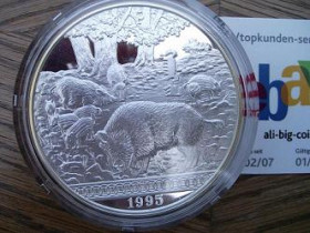 Zweiter Punkt ist, dass die raren mongolischen Mongolen zwar momentan noch nicht weitergeprägt werden, aber zumindest die Preise dafür weiter anziehen. Besonders die gilded Varianten aus frühen Jahren sind doch recht stark gesucht. Hier ein Beispiel sogar nur mit dem MDM-Zertifikat, der wünderschöne gilded Haseaus 99. Traumsummen möchten manche damit auch erzielen, aber preisliuch denke ich, dass der so oder Richtung 75-80€ laufen könnte. Bei selteneren Stücken wie dem 96er Mäusengibts immerhin auch mal wieder Kaufmöglichkeiten... Sehr teuer für das bisschen Silber, aber gar nicht mal sooo extrem, hat der gilded Tiger doch schon über 100€ gebracht...