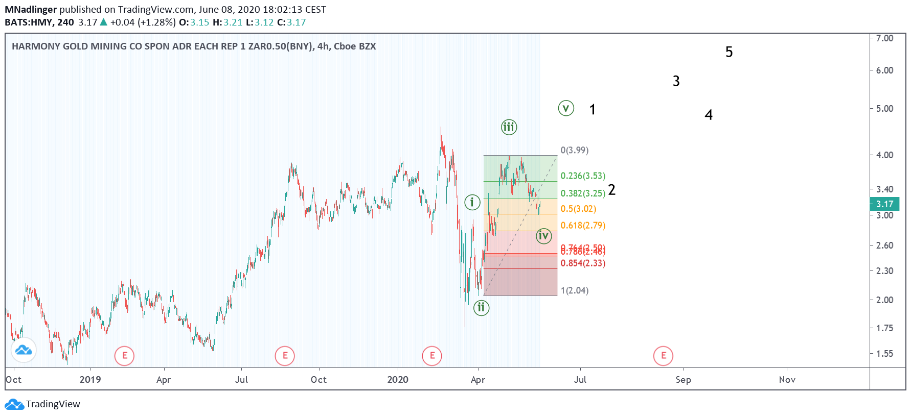 Harmony Gold Mining ist mit 1,7 Mrd. USD etwa unter 1-fachen Jahresumsatz bewertet, da gibt's nicht viele Minenaktien soweit ich geschaut habe (Falls wer noch welche hat bitte berichten). Sie produzieren etwa 1,2 Mio Unzen Au pro Jahr, was bei einem Goldpreisanstieg von 140$/oz. nach meiner Milchmädchenrechnung den Free Cashflow & Gewinn um satte 170 Mio. $ erhöhen sollte - wenn sonst alles gleich bleibt - also 10% der Marktkapitalisierung. Ist aber im Endeffekt ein Spekualtion auf höhere Goldpreise, denn wer weiß ob sie die AISC stark senken können...Die Reserven sind mit insgesammt durchschnittlich 80$/oz. bewertet. Es scheint mir hier etwas Risiko eingepreist zu sein. Zudem hat die Aktie kürzlich etwas abgegeben, und ist bei 50% der vorherigen Welle abgeprallt und geht leicht aufwärts/konsolidiert.