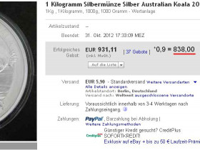 Kilo Silber für 838 plus Versand bei POS 801,22 und billigstem Anbieter 900,00 Euro find ich auskömmmlich...