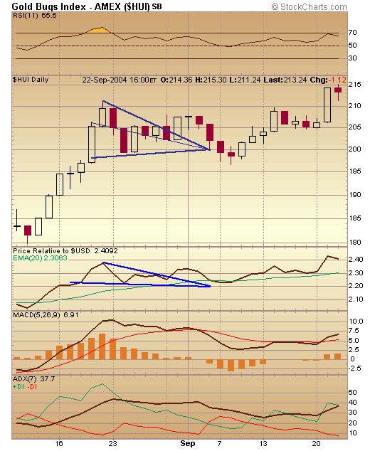 HUI & XAU -stabil trotz Goldpreisrueckgang von $10 in einer Woche.