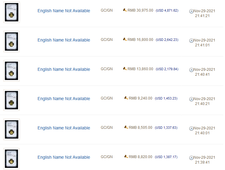 Dabei wurde der Boom bei älteren chinesischen Münzen (Kaiserreich, 1890 bis 1911) völlig übersehen. Da werden jetzt locker Preise von 10.000 bis 200.000 (!) USD pro Münze bezahlt. Und dabei wurden die Stempel und Münzpressen für diese chinesischen Münzen in Deutschland (Esslingen, Göppingen) hergestellt.