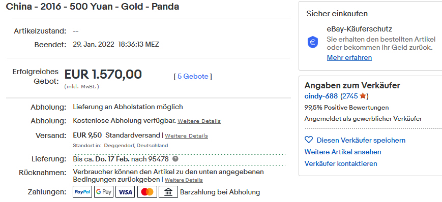 wenn der Verkäufer den Panda 2016 gekauft hat, hat er ca. 1050 € angelegt, also kein schlechter Ertrrag. Man muss nicht immer den letzten Euro rauspressen um ein gutes Gechäft gemacht zu haben