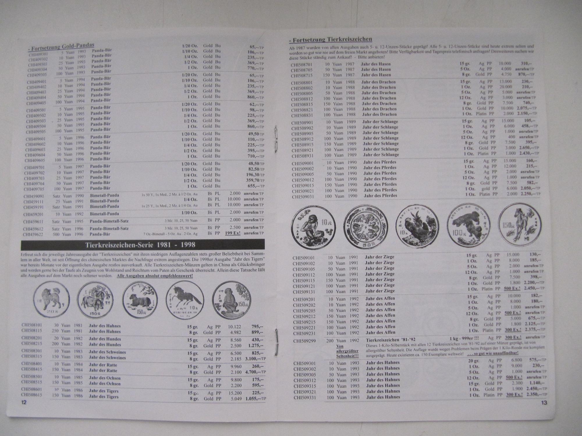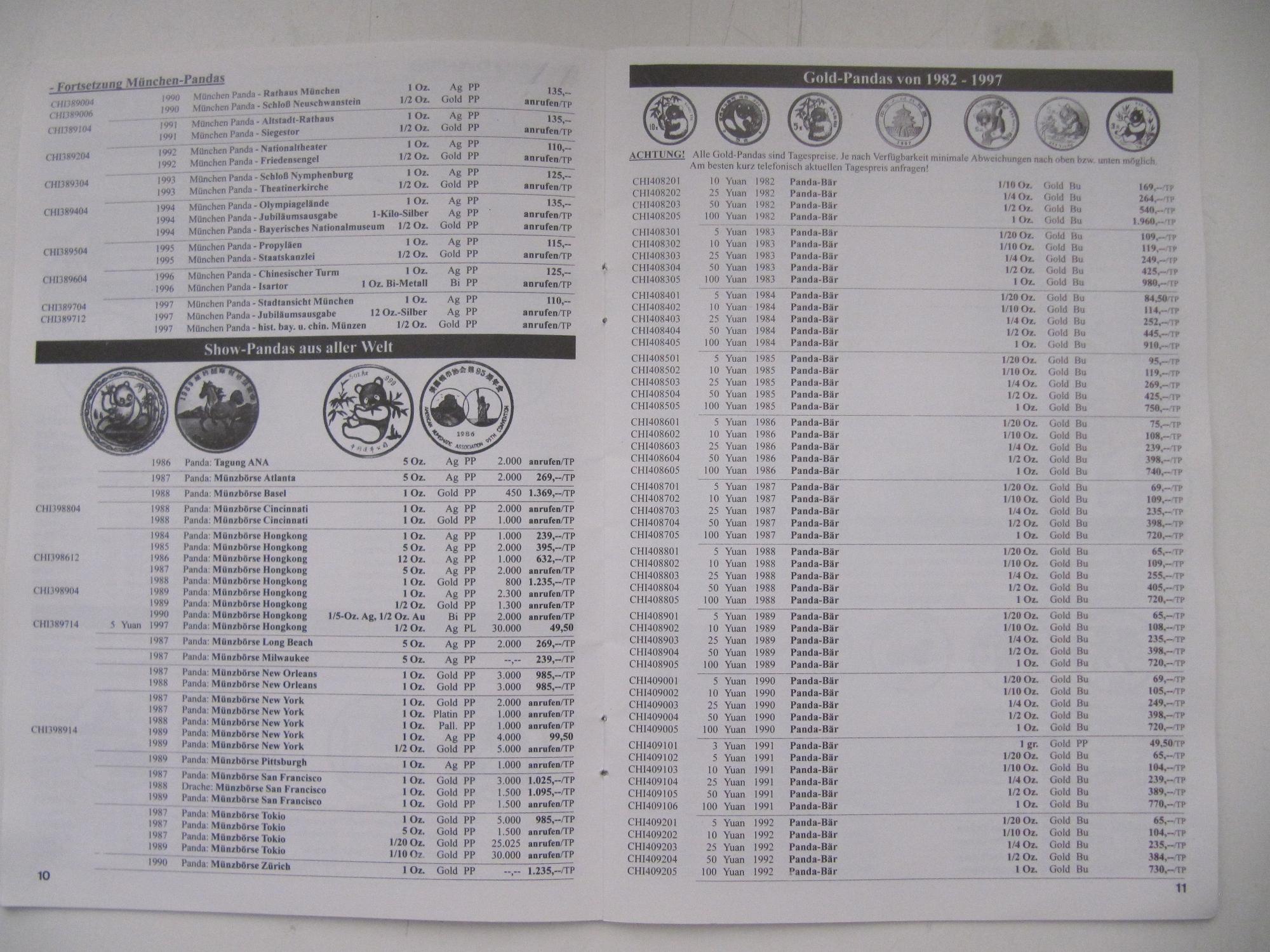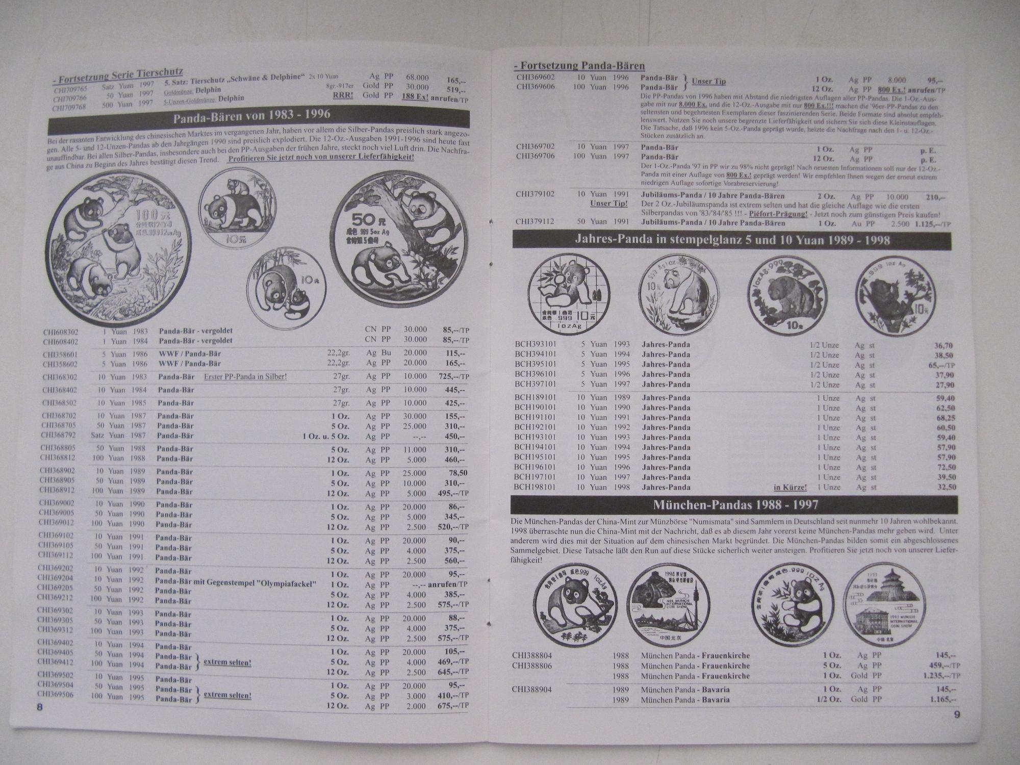 ein sehr interessantes Dokument. Es zeigt vor allem wie uneinheitlich die Preisentwicklung ist. Einen 95er 12 oz Panda würde heute freilich jeder mit Kußhand für 340 Euro nehmen, aber würdet Ihr auch ohne Weiteres 30 Euro für einen 1989 1 oz zahlen, oder 36 Euro für einen 1996er