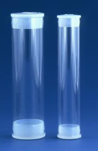 Im Medizinbereich gibt es diverse "Runddosen" in etlichen durchmessern - diese Dosen gibt es in PVC und als Glas.