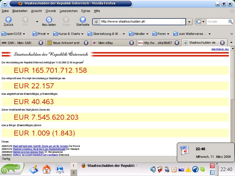 Vielleicht kann man die Schuldenuhr auch auf anderen Seiten "bewundern" ?