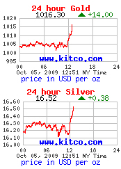 • Bin auf die Prophezeiungen des Mahendra gestoßen. Er hatte bisher wohl sehr viele korrekte Vorhersagen. Lt. seinen Aussagen soll der Goldpreis bis max. 1002-1007 $/Unze steigen und ab 09.09.2009 bis Mitte 2010 bis 550$ und Silber bis 6,45$ pro Unze fallen!