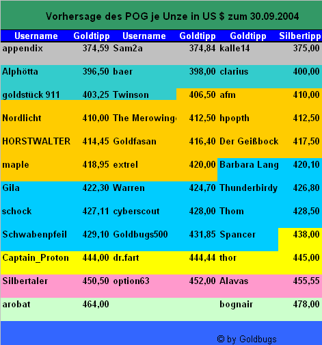 der Goldpreis wird am 30.09.2004 genau 417,50 betragen. Ich freue mich schon auf München.