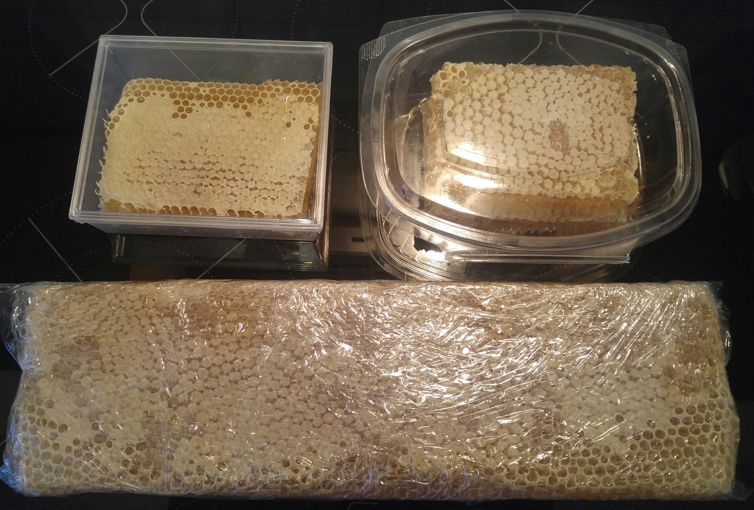 Das "flüssige Gold lässt sich aber auch prima in seiner natürlichen Verpackungsform, der Honigwabe vermarkten und lagern. Ca. 25 % meines Honigs verkaufe ich inzwischen als Wabenhonig. Das erspart dem Imker viel Zeit und Geld(keine Investition in einer Honigschleuder und weniger Arbeit). Die Biene muss dafür halt etwas mehr schaffen ![]()