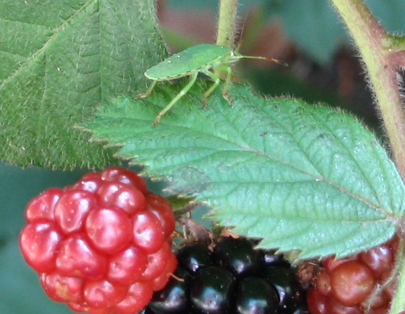 Denke es ist die Larve einer grünen Stinkwanze und damit nur für deine Brombeeren gefährlich ![]()