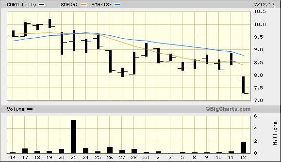 "COLORADO SPRINGS – April 29, 2013 – Gold Resource Corporation (NYSE MKT: GORO)(the “Company”) declares its monthly dividend for April 2013 payable on May 23, 2013 to shareholders of record as of May 13, 2013. The Company is modifying its monthly instituted dividend from $0.06 per share per month to $0.03 per share per month starting with the April