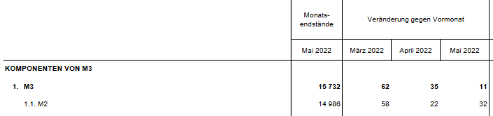 Die Jahreswachstumsrate der weit gefassten Geldmenge M3 verringerte sich im Mai 2022 auf