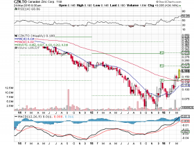 Shares of Canadian Zinc Corp. (TSE:CZN) traded down 6.67% during trading on Tuesday, reaching $0.07. The company had a trading volume of 328,095 shares. The company’s 50 day moving average is $0.08 and its 200-day moving average is $0.12. The stock’s market capitalization is $15.26 million. Canadian Zinc Corp. has a 1-year low of $0.05 and a 1-year high of $0.25.