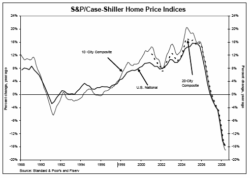 Standard & Poor's/Case-Shiller 20-city housing index faellt 16.3 % im Jahresvergleich, der groesste Rueckgang seit Beginn der Aufzeichnungen.