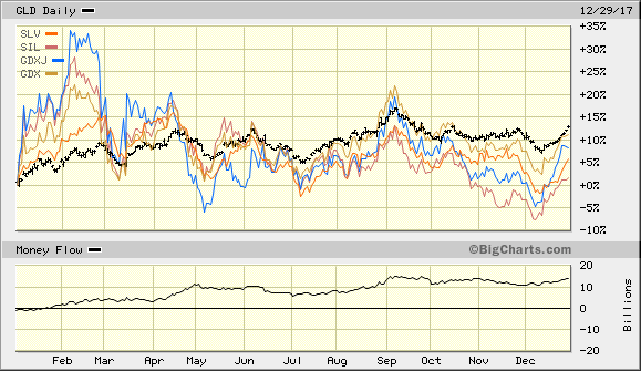 Coming off two successive positive years, gold seems to be building toward something. Fizzling or dropping seem unlikely given 2017’s surprise performance and the general state of global equity markets – most of which seem to be overpriced, overloved and over the top. 2017 will be recorded as a transition year for gold; 2018, in my opinion, will go down as the year gold reasserted itself as a primal force in the global financial marketplace.