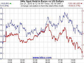 Vergleicht mal die Kurve und den Interventionszeitpunkt mit dem in diesem Beitrag gezeigten Chart. Gestern mag noch das Durchbrechen des ehemaligen Widerstands bei 1250 USD hinzugekommen sein, der durch automatische Verkäufe die Intervention verstärkt hat. Durchaus gewollt aus Sicht der Marktmanipulatoren, wie ich meine.