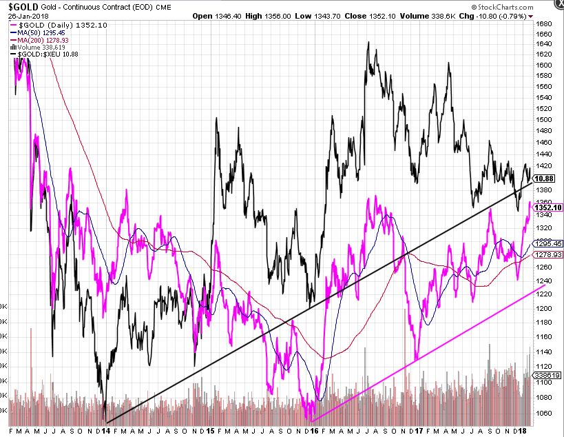 Die Trendwende, wenn sie es jeweils war, gab es beim $Gold (Pink) Ende 2016, beim €Gold (schwarz) Ende 2014