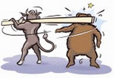 Rangeleien zwischen Bullen und Bären an verschiedene Plätzen im Dorf.