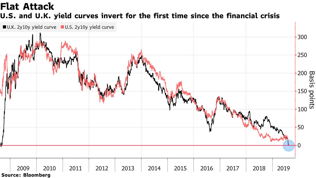 https://www.bloomberg.com/news…delay-relief-markets-wrapSowohl in den USA als auch in Großbritannien fiel am Mittwoch die Rendite für Staatsanleihen mit einer Laufzeit von zehn Jahren unter die Rendite von Anleihen mit zweijähriger Laufzeit