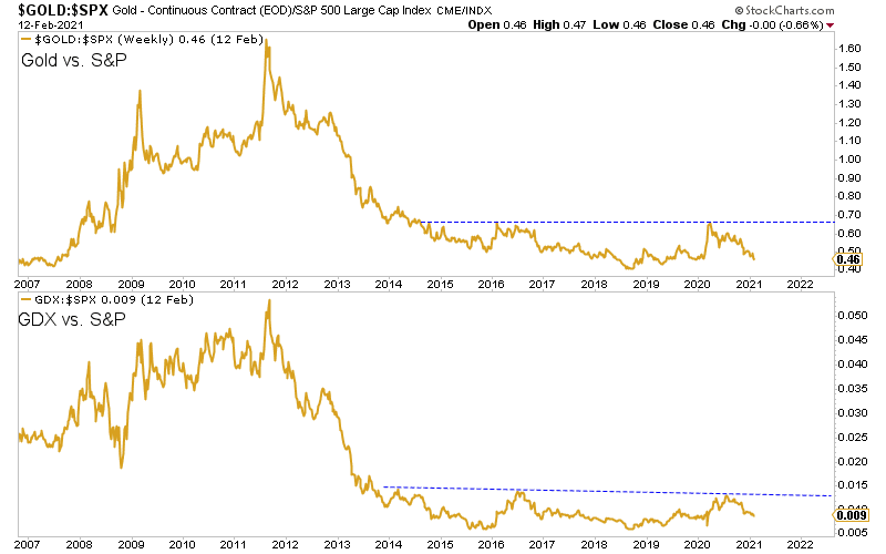 Es besteht das Risiko einer scharfen Korrektur bei Aktien in diesem Jahr, aber Gold und Goldaktien nehmen an diesem Risiko nicht teil, da sie seit letztem August 2020 divergiert haben. Anlagekapital und heißes Geld haben den Sektor verlassen....