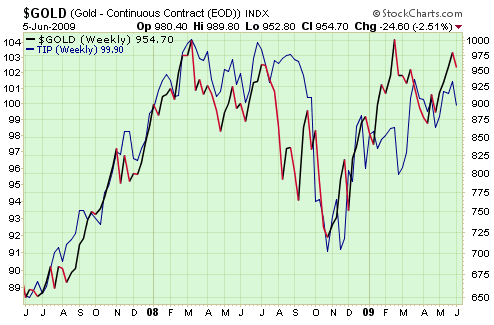 The market views gold above all else as an inflation hedge. Providing excellent evidence for this is an almost ideal correlation between inflation-protected TIPS and gold.