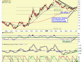Aktuell ist gerade diese Investmentnachfrage schwach: Seit Anfang Juni sind die Goldbestände im SPDR Gold Trust sogar um 24 Tonnen gefallen. Aber auch von anderer Seite fehlen die Impulse: der US Dollar hat sich seit Mitte Mai bei 1,40 EUR-USD stabilisiert, die Preissteigerungsraten sind in den Industrieländern größtenteils negativ, zumal auch der zuletzt wieder spürbar gefallene Ölpreis die Teuerung dämpft. Auch die spekulativen Anleger sind in den letzten zwei Wochen vorsichtiger geworden. Sie haben ihre Netto-Long Positionen leicht abgebaut.