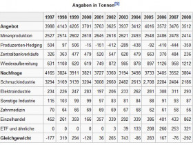 Lag die Nachfrage der Schmuckindustrie 1997 noch bei rund 3300 t so liegt sie heute (2008) bei nur noch 2200 t