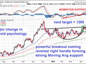 Nach verschiedenen Anzeichen geht er von einem bevorstehenden stärkeren Anstieg des Goldpreises aus, sh. auch Chart.