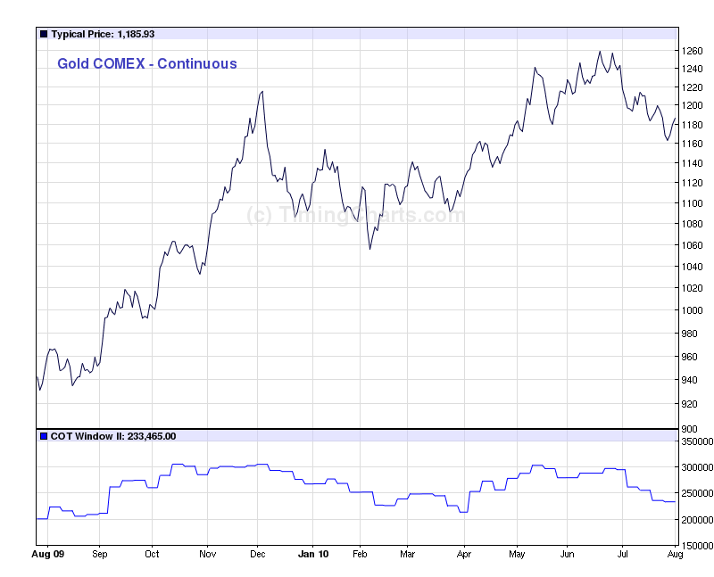 • Nur so zur Richtigstellung: die Commercials waren noch nie long in Gold! Das was hier als Netto Long bezeichnet wird ist in Wirklichkeit eine Netto Short Position und diese ist in der Tat um 11891 Kontrakte gewachsen.