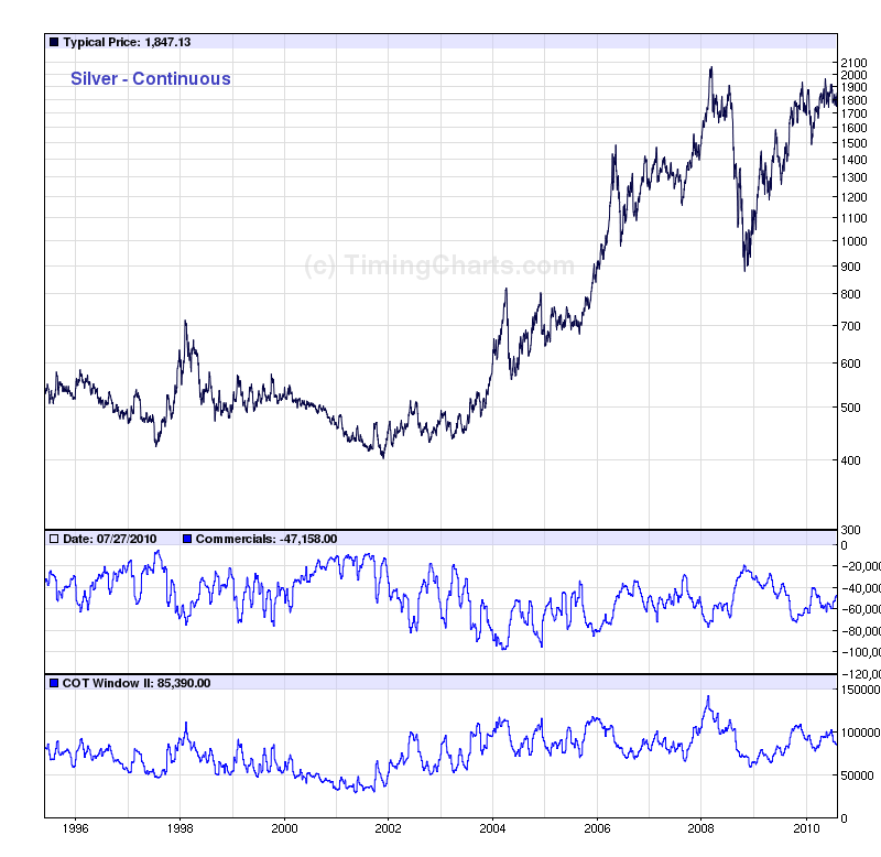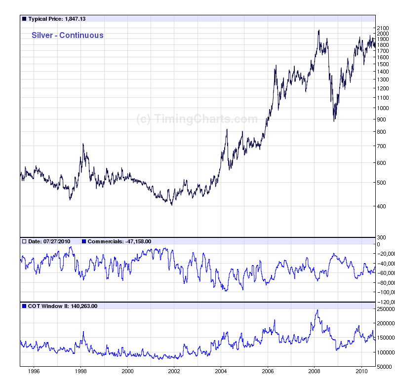 Im Gegensatz zu Buttler kann ich im Silber diese Bewegungen nicht eindeutig erkennen. Dort ist der Trend eher unspektakulär, dass sich da ein Trendwechsel vermuten liese. Für Interessierte hängen die auseinander genommenen Nettopositione für Silber unten an. Wer selber spielen will die charts gibt es auf http://www.timingcharts.com/index.php
