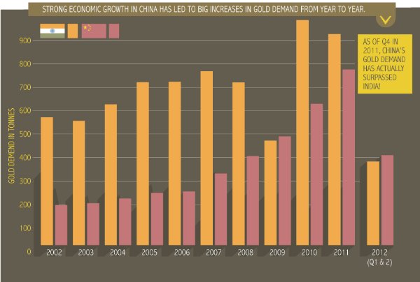 Für Gold kann man davon ausgehen, daß allein China und Indien über die Hälfte der jährlichen WeltGoldneuproduktion (diese beträgt rd. 2500 t)aufnehmen, etwa 1500 t jährlich. Dies entspricht älteren Zahlen, aber auch den angehängten Grafiken. Hinzu kommen sicherlich noch Mengen, die nicht offiziell ausgewiesen werden, sowie Korea, Thailand etc....