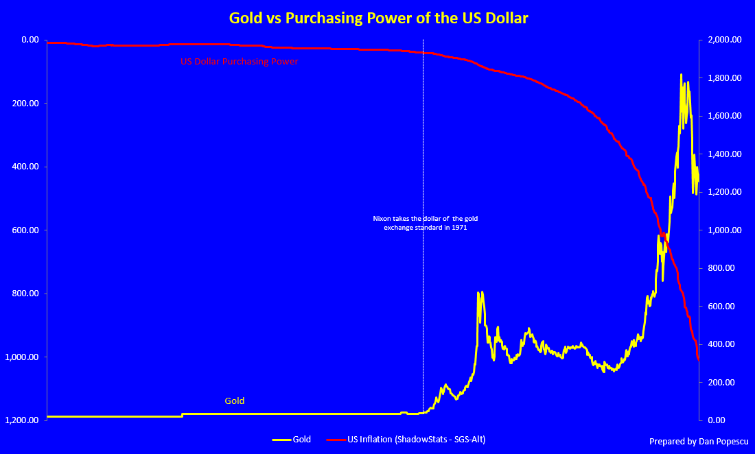 Das ist hier die alte Frage aller Fragen, die etwas näher beleuchtet wird von Don Popescu / Goldbroker. Mehrere sehenswerte Grafiken, die für sich sprechen. Herausgepickt die überaus eindrucksvolle Grafik mit dem Kaufkraftverlust des Fiat $ vs Gold ab 1913, vor der Fed.