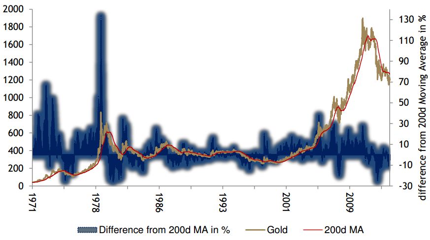 Given all the above trends and data points, Stoeferle feels that gold is in a long term bottom range. Although the price of the yellow metal could go lower in the short run, it seems unlikely that another price crash similar to the one in the first half of 2013 is about to repeat. That is clearly a contrarian call compared to the expectations of “pundits” in the mainstream media (think of the calls of $800 gold).