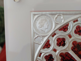 Die Silbermünze zeigt das berühmte Fenster der Westminster Abbey. Es wurde zu Ehren der Herrschaft von Elisabeth II. gefertigt.