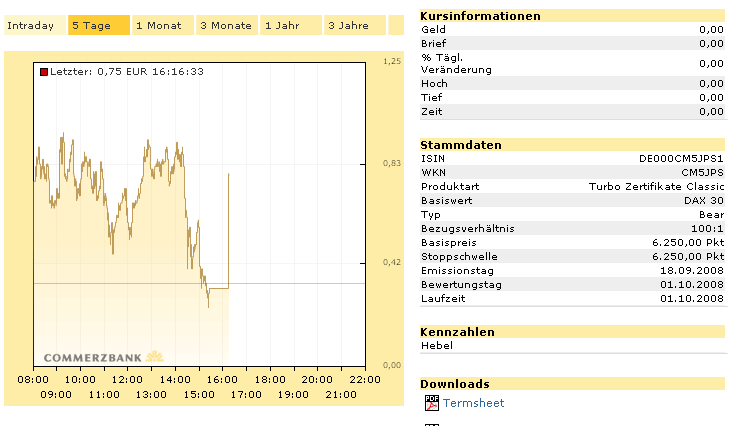 Bei einigen "Zertifikaten" der Commerzbank gibt es scheinbar seit ca. 45 min keine Kursfeststellungen - habt ihr ähnliches beobachtet (spiele ein wenig beim trader2008 ) ?