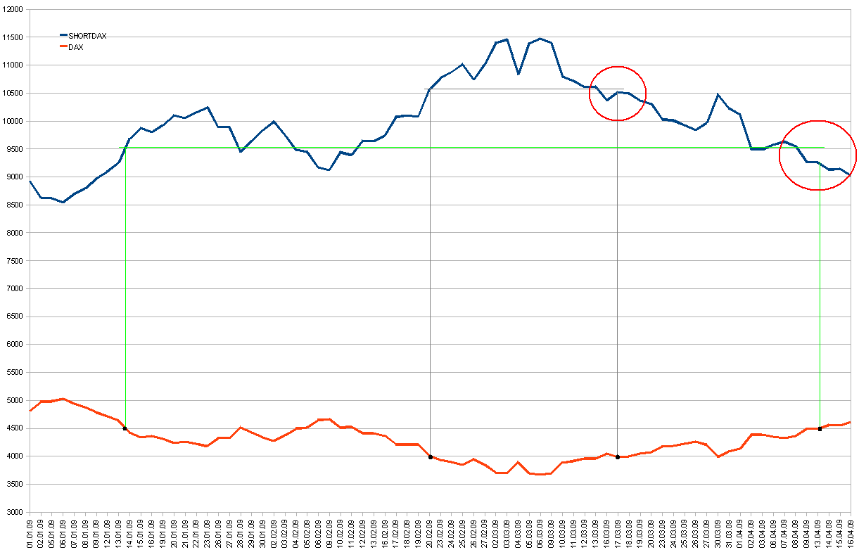 habe DAX und SHORTDAX vom diesen Jahr dargestellt und die Charts driften auseinander!