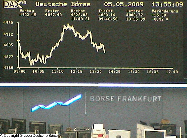 Frankfurt (BoerseGo.de) - Das Handelsvolumen an den deutschen Börsen ist im April erneut kräftig eingebrochen. Der Umsatz auf Xetra und dem Parkett der Börse Frankfurt sei laut Orderbuchstatistik um 43 Prozent auf 100,0 Milliarden Euro (Vorjahr: 175,4 Milliarden Euro) gesunken, teilte die Deutsche Börse AG am Montagabend mit. Davon entfielen 93,5 Milliarden Euro (Vorjahr: 166,6 Milliarden Euro) auf das elektronische Handelssystem Xetra und 6,5 Milliarden Euro auf den Parketthandel (Vorjahr: 8,8 Milliarden Euro). Auf Xetra wurden im April rund 15,1 Millionen Transaktionen getätigt. Das waren 6 Prozent weniger als im Vorjahresmonat (16,2 Millionen).