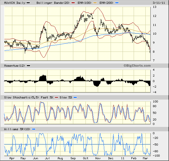 Eine der Voraussetzungen wäre ein guter Chart. Selbst hier ist KCN in schwerem Wasser: Dead Cross der 100 mit 200 MA ist bedenklich, auch 200 MA fallend.