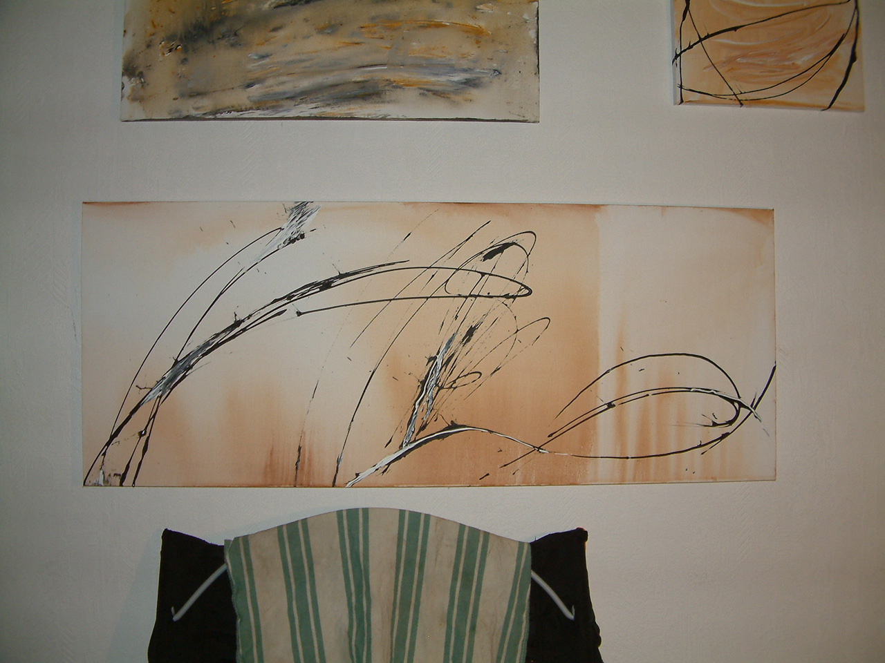 Naja, dann doch lieba selbstjemacht. Köönt' ihr aber auch koofen, sagen wir, 40 Euro + Versand. Nur das zentral abgebildete Acrylbld, versteht sich - das schmutzige Geschirrhandtuch und die beiden Bilder da drüber gehören nicht zum Angebot.