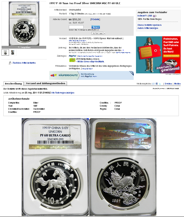 Meine Vorliebe gilt vor allem Silbermünzen ( Kanada, USA, Mexiko, Australien, China, Russland, Österreich, .......)Außerdem versuche ich ältere Gold- und Silbermünzen aus dem fränkischen Raum,