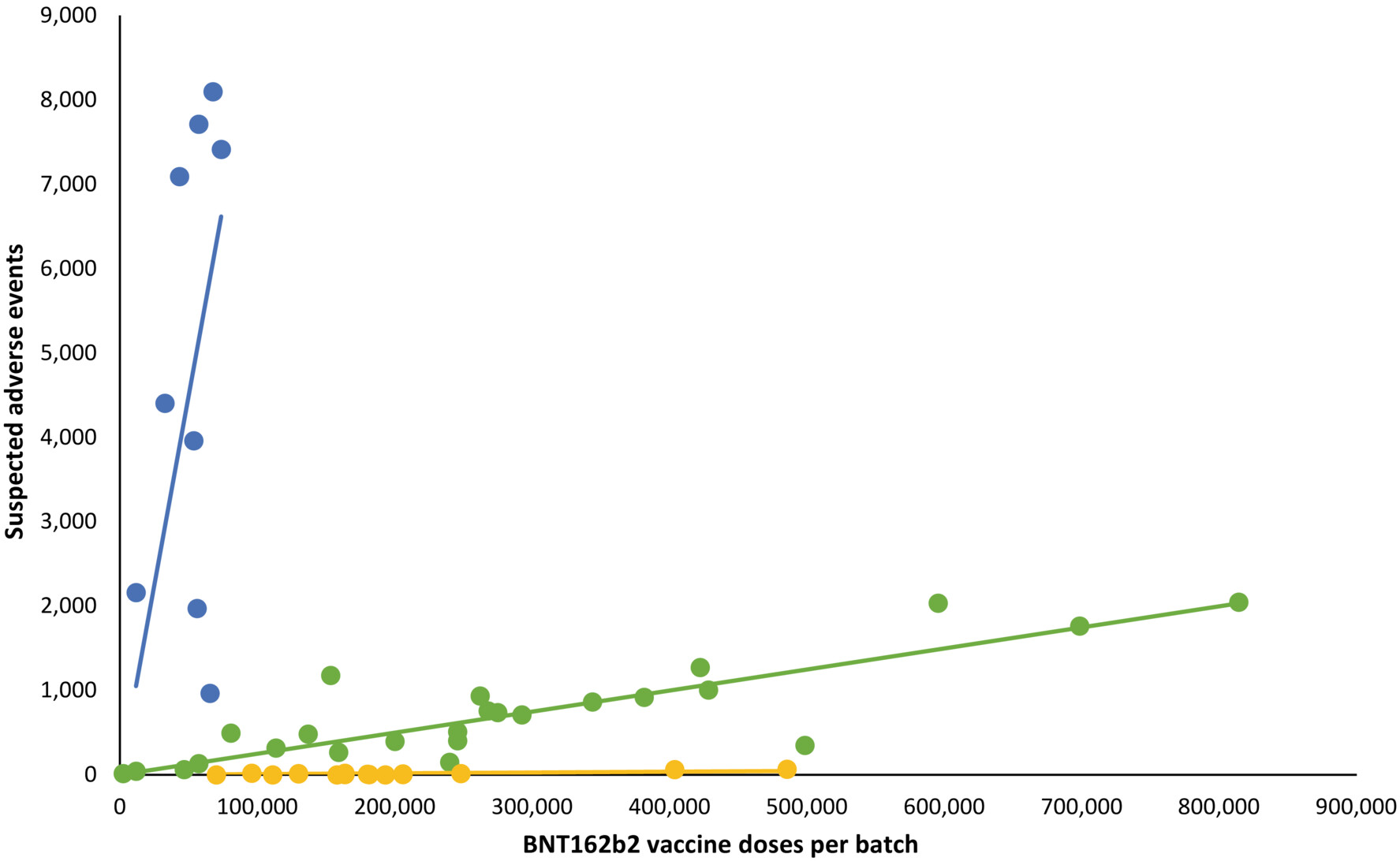 Unerwarteterweise variierten die SAE-Raten pro 1000 Dosen beträchtlich zwischen den einzelnen Impfstoffchargen... Es wurden drei vorherrschende Trendlinien ausgemacht..."