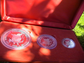 Bei solchen Stücken handelt es sich um Gelegenheiten, die man zum Beispiel von der perth mint recht nahe am Silber-bzw. Goldkurs erwerben kann. Solche Stücke sind meist selten und hochwertig coloriert, sodass die Farbe gewiss nicht abbröckelt, wie auch schon an anderer Stelle behauptet wurde. Einfach zwei Beispiele der besagten mint. Wie ich finde schöne Raritäten, die man einfach gerne sammelt
