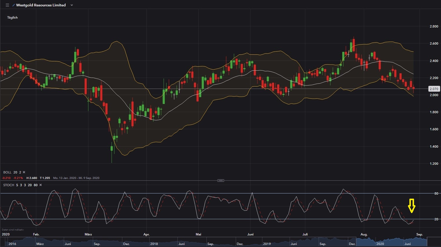 WGX hat auch in 2019 schon einen recht ordentlichen Run hingelegt und befindet sich seitdem in der Konsolidierungsphase. Nach zwei gescheiterten Ausbruchversuchen auf Wochenbasis laufen wir gerade wieder in eine starke Unterstützungszone bei ca. 2 AUD, die lediglich beim Coronatief gerissen wurde. Ich denke wenn beim nächsten Anstieg endlich der Deckel bei 2,50 - 2,60 AUD wegfliegt geht auch hier wieder die Post ab. Zu den guten fundamentalen Daten (vielen Dank an alle hier für die Infos