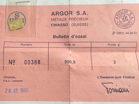 Argor S.A.A. "Premex AG" 1/10oz Gold mit Seriennummer zwischen 000500 und 001000