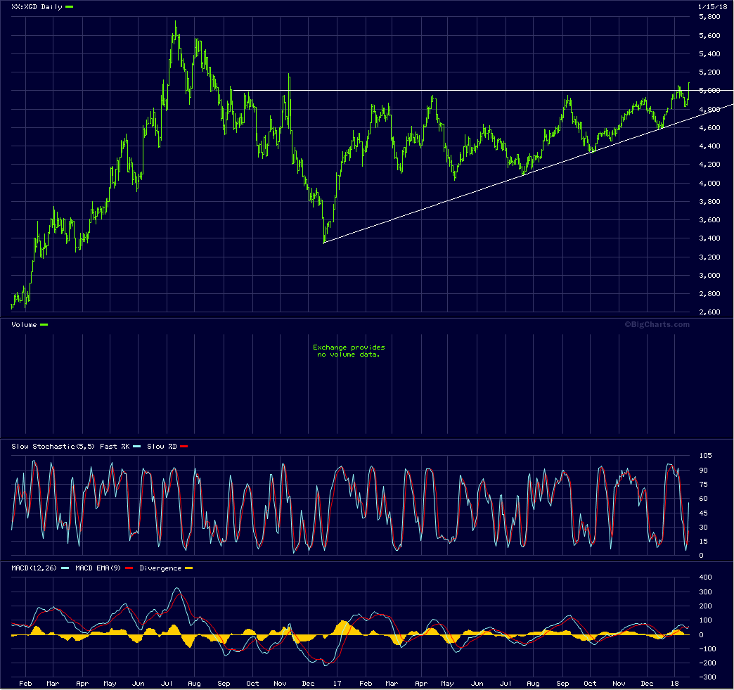 Die Australier brechen aus, der Rücklauf bis 4650 fand nicht mehr statt, was als sehr bullisch betrachtet werden kann. Ich bin nach August 2016 wieder long im Edelmetallsektor.