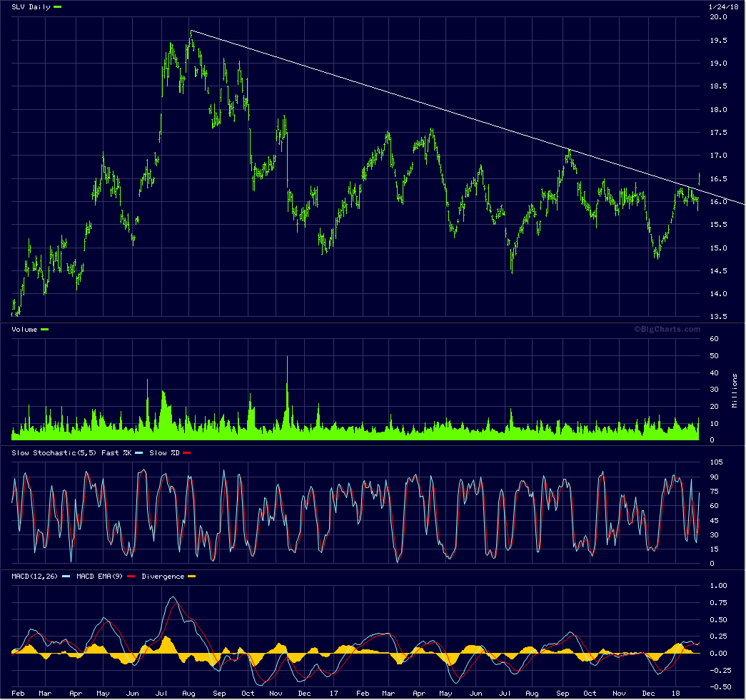 Der Druckaufbau im Silber ist immens. Es ist davon auszugehen, dass sich der SLV morgen per Weekly-Gap aus dem Abwärtstrend befreit.