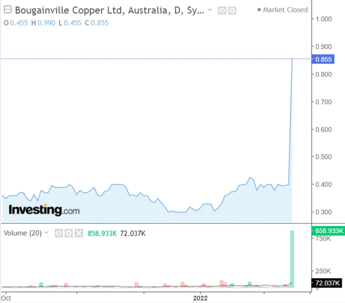 An der Börse bestimmen Erwartungen die Kurse! Und die waren, nein, die sind bei BOC bei den politischen Entwicklungen auf Bougainville, und den Entwicklungen des Kupferpreises gerechtfertigt!