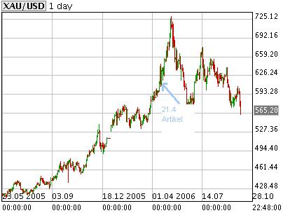 Absolut falsch gelgen. Gold stieg brav weiter bis USD 720 (siehe chart), wieder sinnlose Angst geschürt