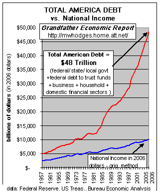 Die Kurve ist nahezu identisch mit deiner Kurve, zeigt aber die explosionsartige Zunahme von Krediten und somit den Zusammenhang von Kreditwachstum und Inflation. Für die steil ansteigende Kurve sind übrigens weniger die in meinem Beispiel angeführten Unternehmer verantwortlich, sondern viel mehr US Gov. mit seiner unfassbaren Verschuldungsorgie.